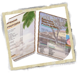 Our menus offer a variety of foods for all the tastes: tender meats and fresh sea foods that honor our geographical position close to the sea. These menus are prepared in different ways to delight our customers with an exquisite taste along with an excellent presentation. All are served with our special Pencas Rice or other side dishes of our delicious cuisine.